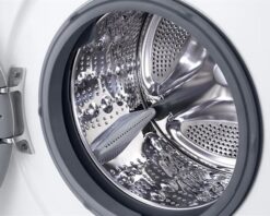 Thiết kế của máy giặt mang đậm phong cách thanh lịch, nâng tầm không gian nội thất trong nhà. Lồng giặt được làm từ thép không gỉ, đảm bảo độ bền và tính chất chống gỉ sét cho sản phẩm.