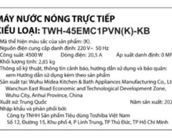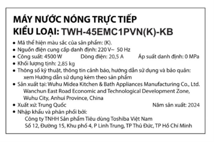 Máy nước nóng trực tiếp Toshiba TWH-45EMC1PVN(K)-KB sở hữu thiết kế sang trọng và hiện đại, đồng thời tích hợp hệ thống bảo vệ đa lớp được sản xuất tiêu chuẩn an toàn khắt khe nhất, máy tắm nước nóng Toshiba đảm bảo an toàn tuyệt đối cho người dùng.