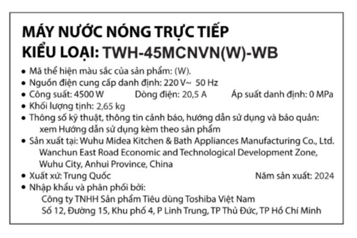 Máy nước nóng trực tiếp Toshiba TWH-45MCNVN(W)-WB