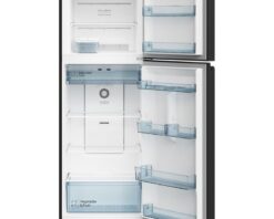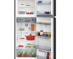 Tổng dung tích sử dụng lên đến 409 lít, chia đều cho cả ngăn đá (trên) và ngăn mát (dưới), phù hợp cho gia đình có từ 4 đến 5 thành viên hoặc nhu cầu trữ thực phẩm lớn. Không gian bên trong được tối ưu giúp người dùng dễ dàng phân loại và sắp xếp thực phẩm gọn gàng.
