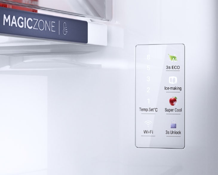 – Ngăn Magic Zone với 3 mức nhiệt độ điều chỉnh linh hoạt, phù hợp bảo quản thịt cá sử dụng trong ngày, làm mát đồ uống hoặc giữ tươi nguyên liệu.