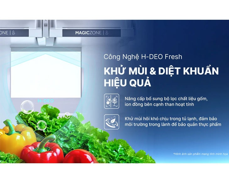 – Tủ lạnh Aqua Inverter 455 lít AQR-T518FA được tích hợp công nghệ kháng khuẩn khử mùi H-DEO Fresh, loại bỏ vi khuẩn và mùi hôi hiệu quả, mang lại không gian sạch sẽ và an toàn cho thực phẩm bên trong tủ.