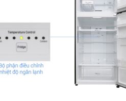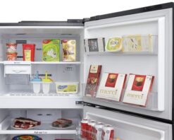 Tủ lạnh với dung tích 393 lít gồm ngăn đá 110 lít và ngăn lạnh 283 lít, thoải mái lưu trữ thực phẩm cho gia đình khoảng từ 3 – 4 người.