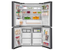 – Tủ lạnh Multi Door 4 cánh với thiết kế mặt kính màu đen sang trọng, tạo điểm nhấn tinh tế cho không gian bếp hiện đại.